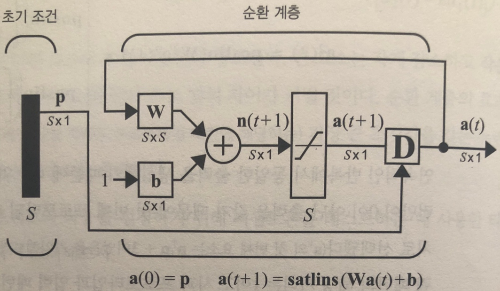순환 계층의 효과는 가장 큰 값 (입력과 해밍 거리가 가장 가까운 프로토타입 패턴에 해당) 을 갖는 뉴런을 제외하고 모든 뉴런은 0을 출력한다.