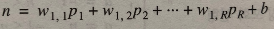 \end{bmatrix}^T $$ 인 경우 네트 입력은 $$ n=Wp+b=\begin{bmatrix}