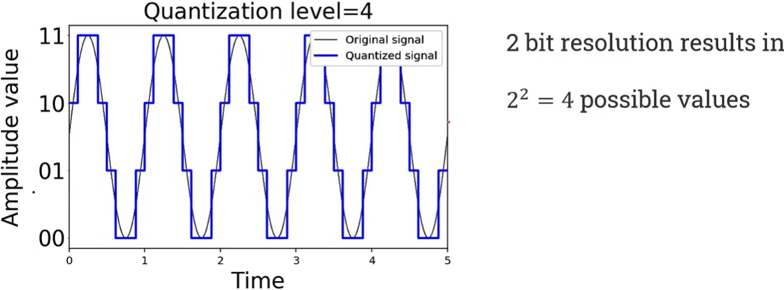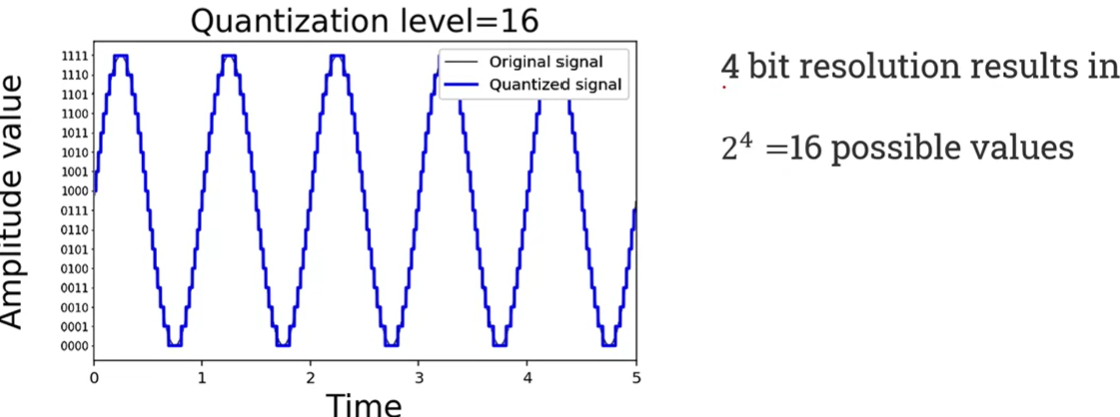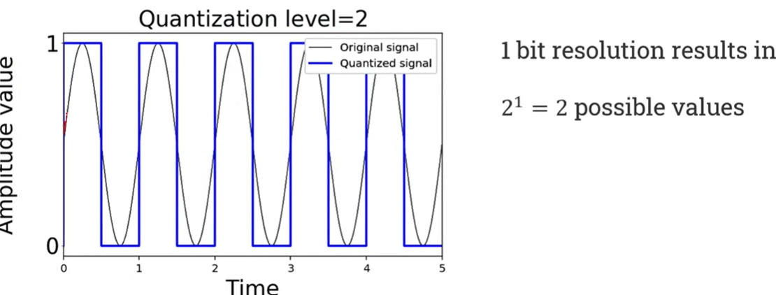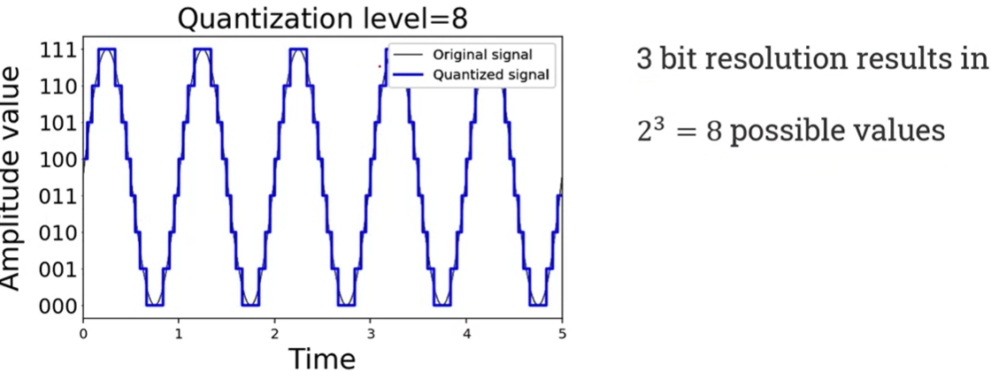 The act of assigning an amplitude value to the sample is called quantising and the number of amplitude values available to the ADC is called the sample resolution.