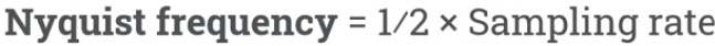 The Nyquist theorem defines the minimum sample rate for the highest frequency that we want to measure. The Nyquist frequency, also called the Nyquist limit, is the sample rate divided by two.