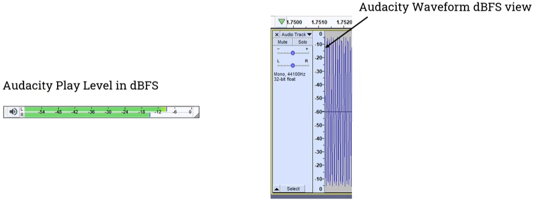 - For example, in Audacity, the meters are in decibels that go from zero to minus infinite.