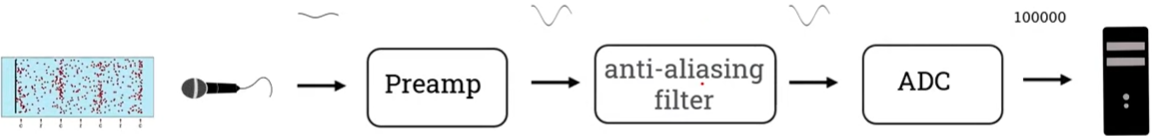 - Vibrations in the air are converted to an analogue electrical signal by a microphone.