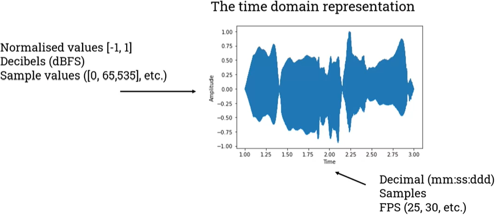 2. The frequency domain gives us information about the frequencies of a sound (sounds can be composed of millions of frequencies as they don't just have one frequency).