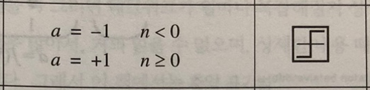 - 대칭 하드 리밋 전달 함수: $$ a=hardlims(-1.8)=-1 $$