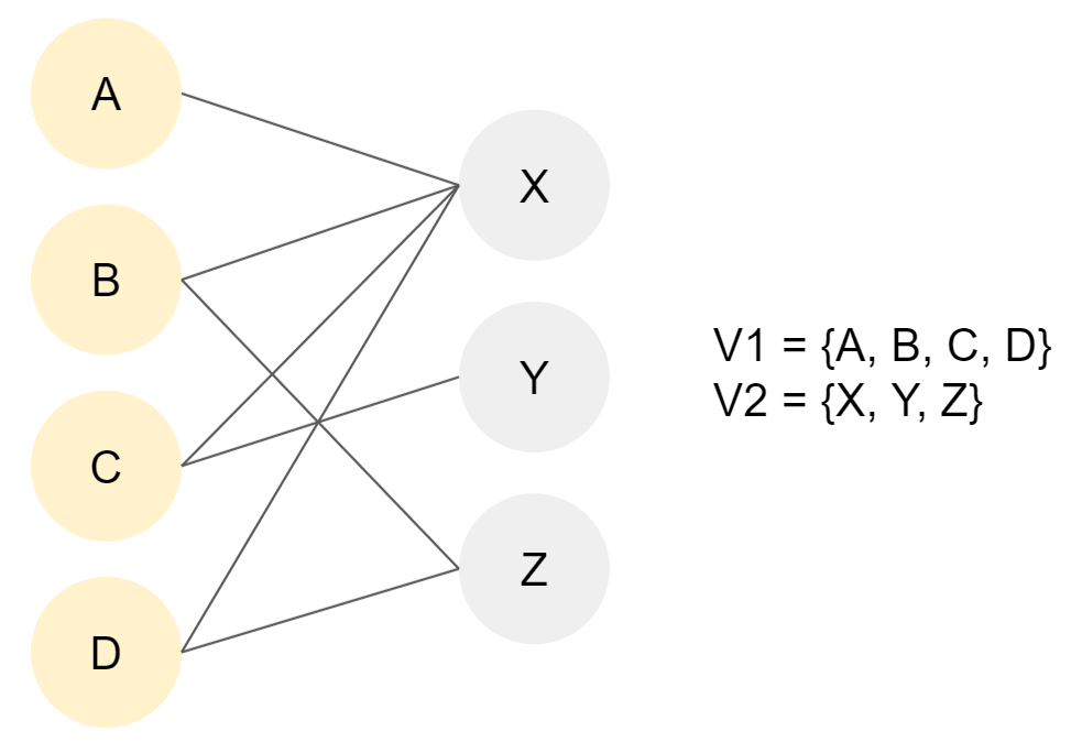 A graph G(V,E) is called a bipartite graph. V and E are usually called the parts of the graph.